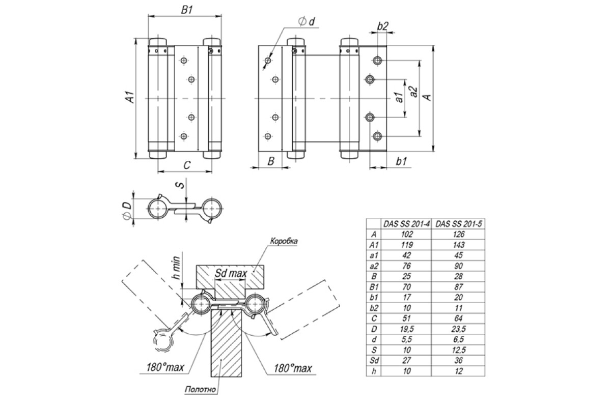 - Петля пружинная двухсторонняя Armadillo DAS SS 201-5" 125 AB Бронза